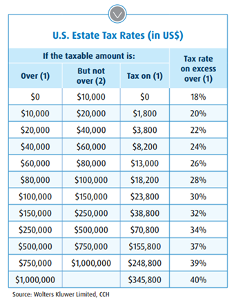 When it comes to the actual calculation of estate taxes, the tax rate varies depending on the value of the U.S. assets. The following table summarizes this calculation: